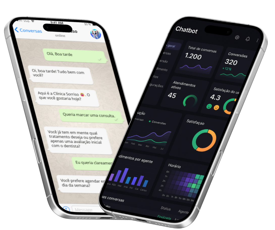 Pode sim! Temos um painel fácil de usar que mostra tudo: quantas pessoas foram atendidas, quantas vendas vieram do chatbot, quais perguntas são mais comuns… tudo para você saber exatamente como ele está ajudando o seu negócio.